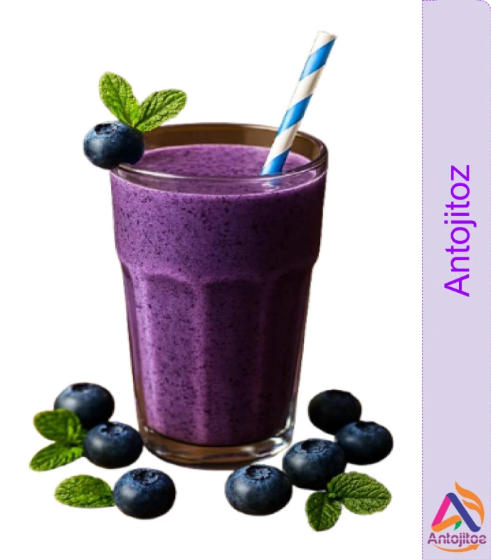 “Arándanos intensos con kéfir cremoso: jugo antioxidante y lleno de vitalidad.”