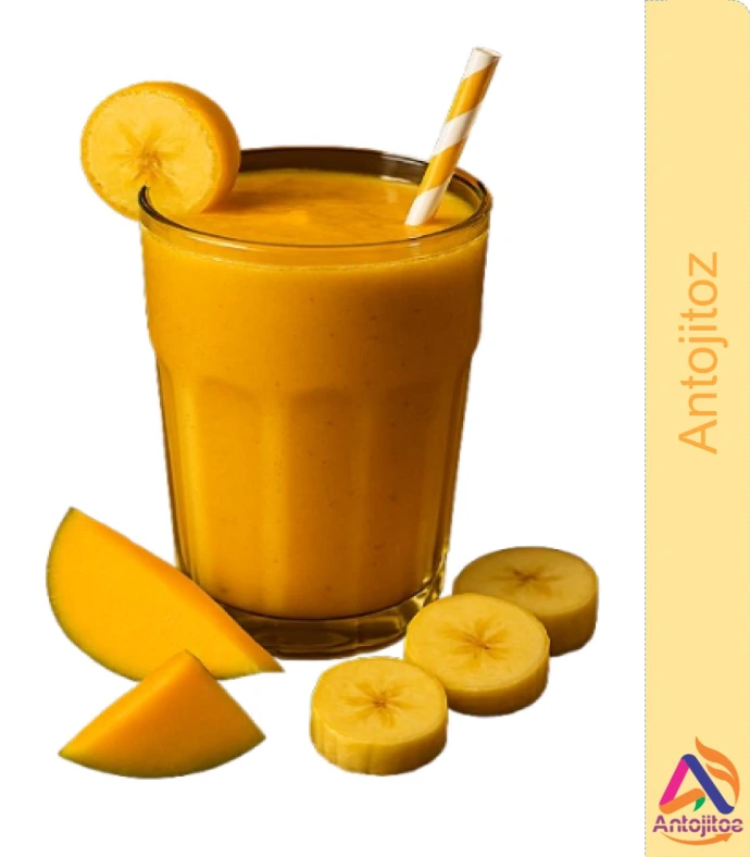 “Mango jugoso y aromático junto a banano dulce y cremoso, combinados con kéfir suave: jugo tropical, energético y naturalmente refrescante.”